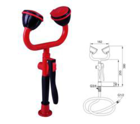 桌上型双口洗眼器,铜质主体,陶瓷阀芯,出水经过减压处理,出水呈泡沫状。