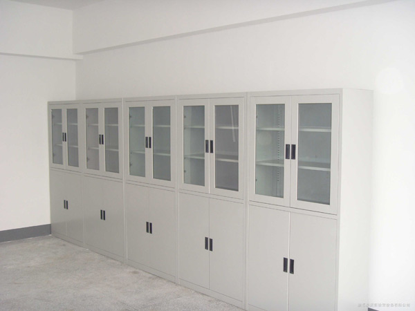 采用宝钢产1.2mm优质冷轧板钢板折弯、冲压而成,表面经酸洗、磷化厚经采用1600目环氧树脂干粉EPOXY喷涂处理,其厚度最少为1、5mils;以适用于实验室环境,上门板中间镶嵌5mm厚玻璃,下钢门,内置多层活动层板,高低可调节;铰链:采用DTC全开不锈钢铰链;拉手:实验室专用铝合金暗拉手或冷轧钢板折弯一次成型拉手;地脚:采用不锈钢与高强尼龙组合地脚承重、防潮、防滑、抑菌、耐腐蚀,可根据室内地坪适当调整高度,可调高度0~50mm
